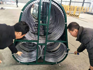 阻隔網(防暴阻隔網)主要由動支架、定支架、刀片網、回收裝置組件等四部分組成。