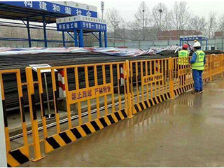 2.防護欄桿立桿高度1200mm,欄桿高度1200mm,標準長度2000mm每檔,刷紅白或者黑黃*示漆并在中間位置設置安全*示標語牌,底部設200mm高紅白或黑黃相間擋腳板。