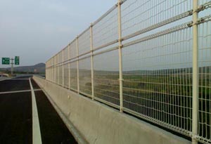 橋梁護欄網(橋梁防拋網)采用優質低碳鋼絲、鋁鎂合金絲編織焊接而成。主要用于對橋梁兩側的保護、防護等作用,本產品所采用的桃型柱、雙圈、波浪、雙邊護欄網等系列的專業產品。